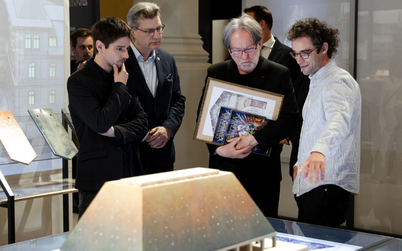 A Művészetek - egy tető alatt című tárlat installációjának középpontjában az új, emblematikus épület áll.