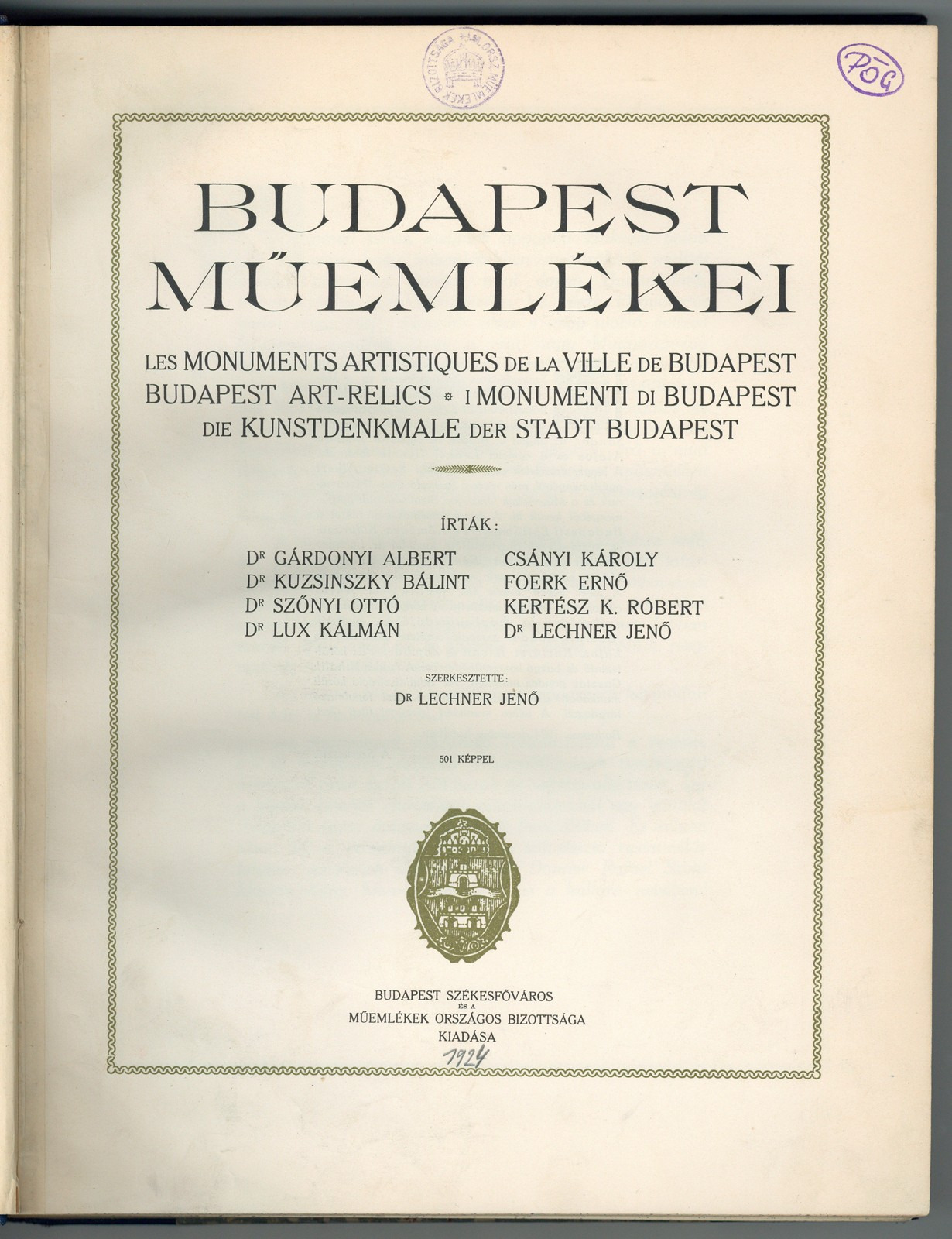 A MOB 1923-ban készült jegyzőkönyvéből kiderül, hogy „tervbe van véve a „Blau Bücher”[1] mintájára egy külön Budapest-kötet kiadása”[2]. A külön kötet megjelenése ellen szólt azonban annak magas nyomdai költsége, ezért a MOB a könyv kiadásának tervezési szakaszában azt is fontolóra vette, hogy az előadások szövegét azok sorrendjében, füzetenként jelentetti meg, 2-3 ív terjedelemben, és az előadásokkal párhuzamosan hozza forgalomba. A könyv előszavában viszont már azt olvashatjuk, hogy a Székesfőváros és a Bizottság közös vállalkozásában, továbbá Klebelsberg Kunó vallás- és közoktatásügyi miniszter hathatós támogatásával a budapesti műemlékeket bemutató, gazdagon díszített összefoglalás önálló kötetben jelenhetett meg. Az eredeti elképzelést tükrözi viszont a kötet borítója, amely valóban a Blauen Büchert idézi.