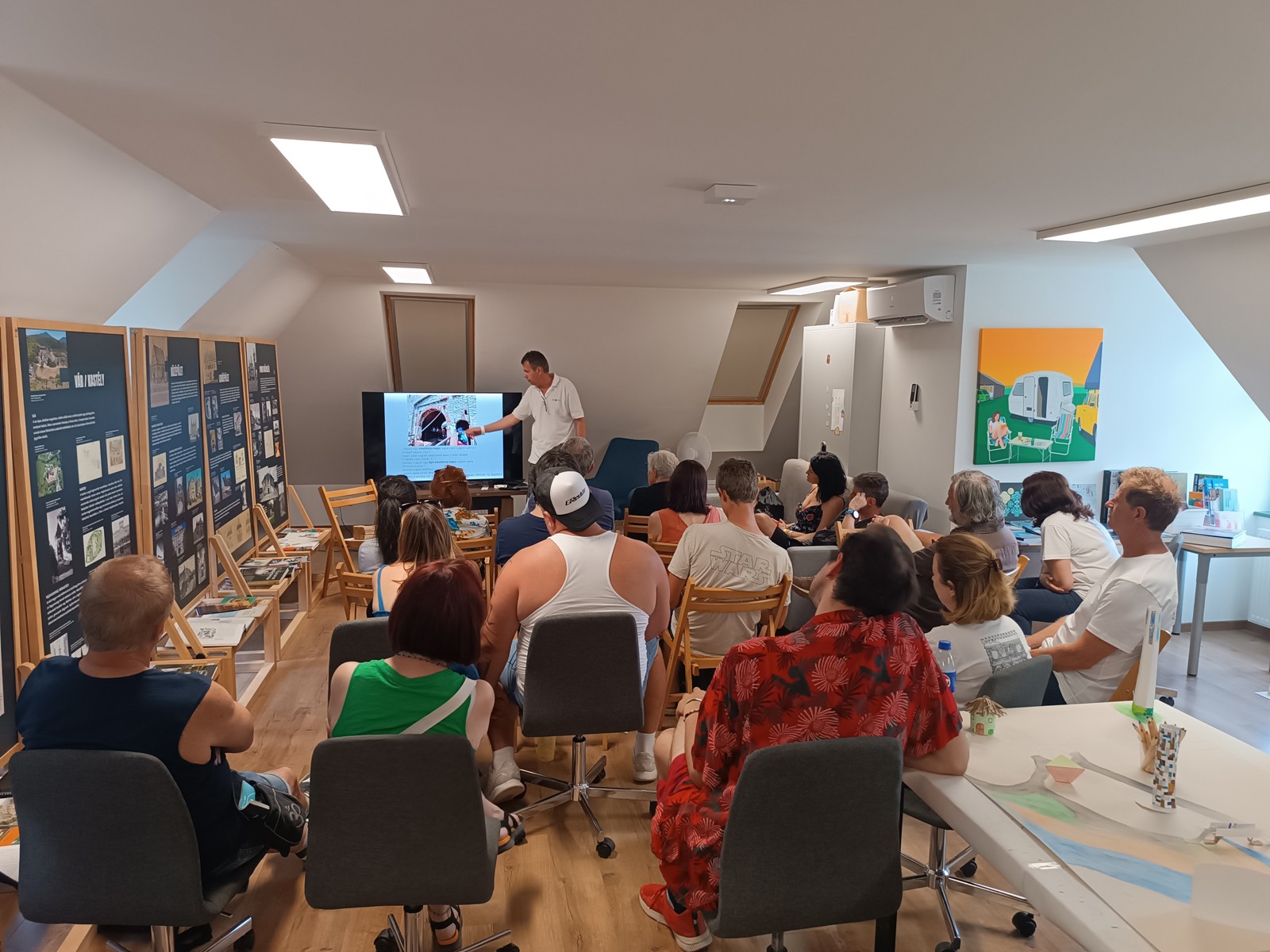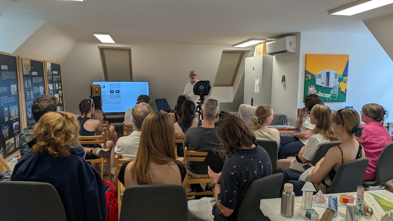 Kollégáink több teltházas előadást tartottak, különböző megközelítésekből érintve az építészet és műemlékvédelem témakörét. Július 19-én intézményünk igazgatója, Dr. Almássy Kornél avatta be a hallgatóságot jövőbeli épületünk, a Magyar Építészeti Központ és Múzeum tervezésének részleteibe, 20-án pedig a Digitalizációs Osztály vezetője, Hack Róbert az épületfotózás történetéről mesélt, illetve régi, speciális műszaki fényképezőgépeket mutatott be, interaktívan bevonva közönségét.