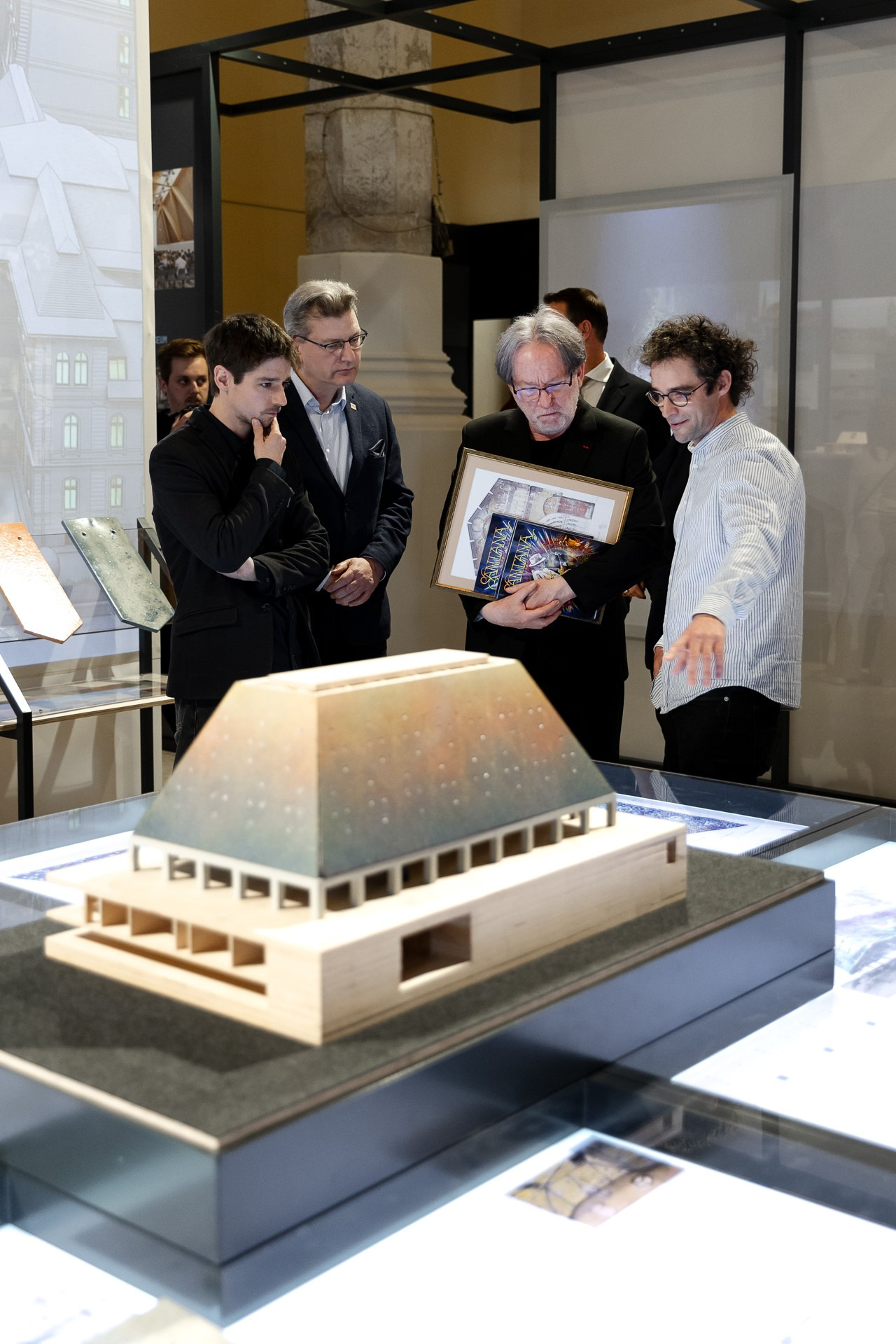 Ugyanakkor az új épületet bemutató kiállítás 2026. március 27-ei megnyitóján Almássy Kornél, a MÉM MDK igazgatója köszöntőjében kiemelte a szakgyűjtemények önmagukban nem hoznak létre új tartalmakat, ezekhez már több kell. „Biztos lábakon álló felkészült szakértelem, a XXI. század adta technikai eszközök ismerete, kreativitás, a kitűzött célok eléréséhez szükséges feladatok rögzítése és végrehajtása.” Az elmúlt időszak sikerei alapján „a magyar építészeti múzeum felnőtt, megszolgált egy önálló múzeumi épületet”. Lánszki Regő, az Építési és Közlekedési Minisztérium építészeti államtitkára, országos főépítész köszöntő beszédében rámutatott „az építészet nálunk mindig több volt, mint szakma. A századfordulón karaktert adott az országnak.” Az elmúlt években kidolgozott szakpolitikai keretek, a megerősödött intézményi háttér, a megalapított Magyar Építészet Napja, az újonnan létrejött Kós Károly-életműdíj és az építészeti törvény irányt ad és minőséget kér számon. Mindezt követően új pályára állt az építészeti múzeum ügye is, a kiállítás pedig a következő lépésről szól, „arról a múzeumról, amely meg fog épülni.” Turi Attila, az MMA elnöke kifejtette az MMA székházában tartott kiállításmegnyitón „azt a közös nyelvet ünnepeljük, amit építészetnek hívunk”. A tárlat bemutatja hogyan válik a téglából és betonból új épület. Megnyitó beszédében Baán László, a Szépművészeti Múzeum főigazgatója emlékeztetett a legelső építők menedéket építettek, míg az építészet mindig is egy közösség aktuális állapotáról és jövőjéről szólt. „A jó múzeum megőrzi, nem lezárja a történeteket” - hangsúlyozta a Liget Budapest projekt miniszteri biztosa.