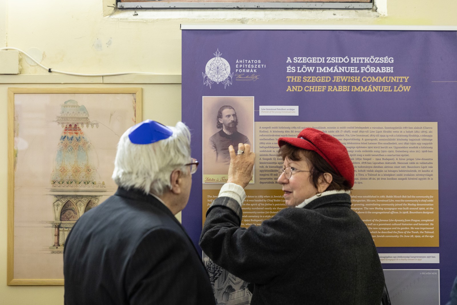 A Szegedi Új Zsinagóga kiállítóterében az építész életművét bemutató roll-upokon kívül a hitközség archívumában őrzött korabeli tervdokumentáció is látható, a zsinagóga 1903-as avatásán használt rituális textilekkel együtt. A megnyitón Buk István hitközségi elnök mondott köszöntőt, a megnyitóbeszédet Heisler András, a MAZSIHISZ elnöke tartotta. Beszédében kiemelte a zsinagógaörökség fenntartásának és megőrzésének fontosságát. Dr. Almássy Kornél, a MÉM MDK igazgatója nevében Dr. Oszkó Ágnes Ivett kurátor, az intézmény kutatója köszöntötte a megjelenteket, dr. Pataricza Dóra történész, a kiállítás kurátorasszisztense pedig rövid szakmai bevezetőt tartott.