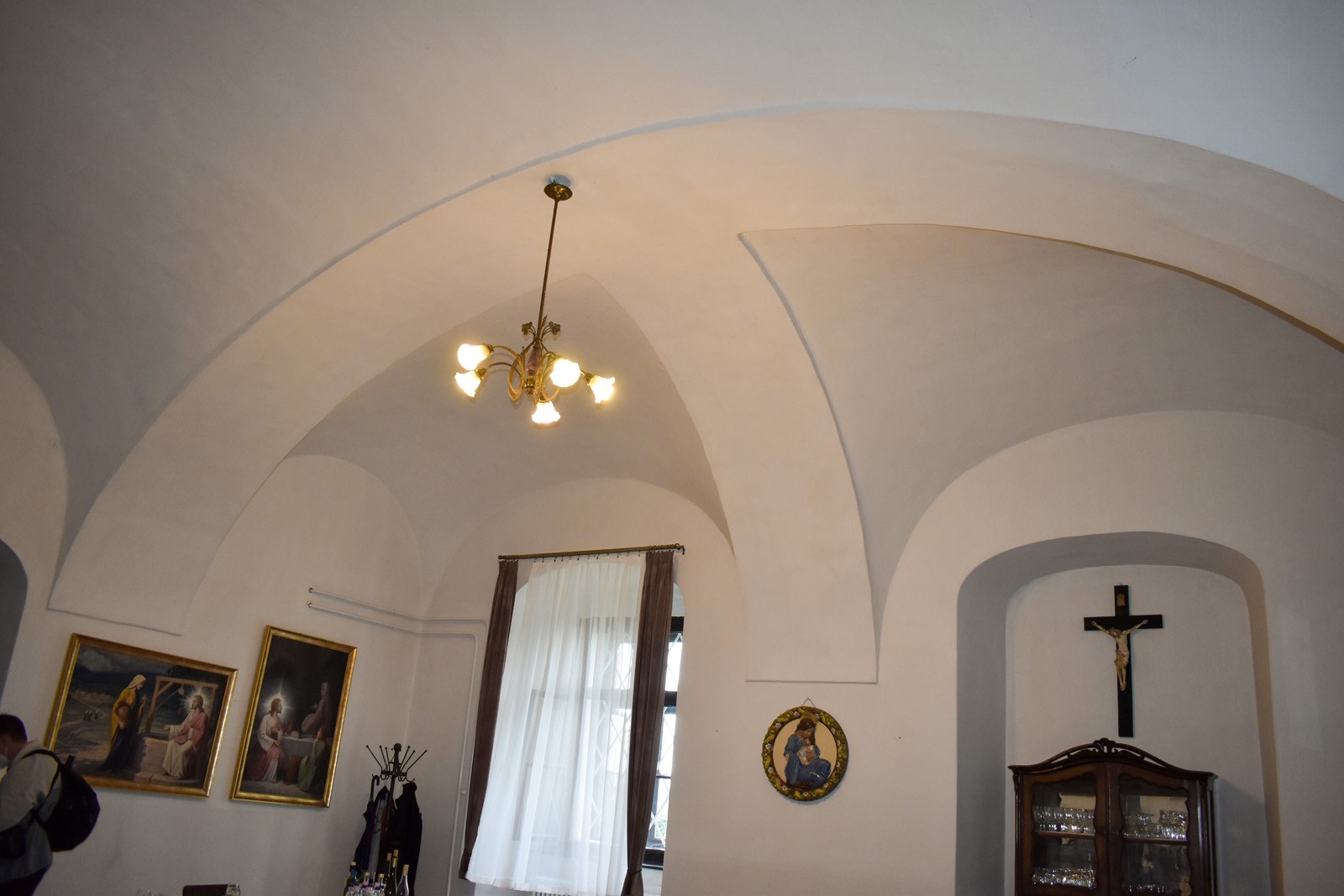 A ház keleti harmadában két, az első periódus teljes szélességét elfoglaló helyiség volt található. A nyugati egy teknőboltozatos tér, mely minden bizonnyal konyhaként szolgált. Keleti falán kifoltozott gerendafészkeket tártunk fel, melyek talán az egykori füstfogó gerendák beültetésére utaltak. A legreprezentatívabb helyiség pedig a ház keleti végében nyílott, amely már a többitől eltérő boltozatával (hevederekkel tagolt csehsüveg-boltozathoz a keleti szakaszon közvetlenül ízesülő, kétszakaszos csehsüveg-boltozat) is felhívta magára a figyelmet. Az oldalfalakat helyenként vastag, jó minőségű vakolatra felhordott barokk díszítőfestés borította, az északra – a püspöki (ma érseki) palota felé néző – átjáróba nyíló, nívós, barokk kétszárnyú ajtó megtalálható ma is. Még meglepőbb volt feltárni az ajtótól keletre egy kandallónyílást, amelynek kőszerkezetét a megszüntetésekor, elfalazásakor kiemelték. Mindezek alapján a helyiség funkcióját az alkalmazottak ebédlőjeként határozhatjuk meg.