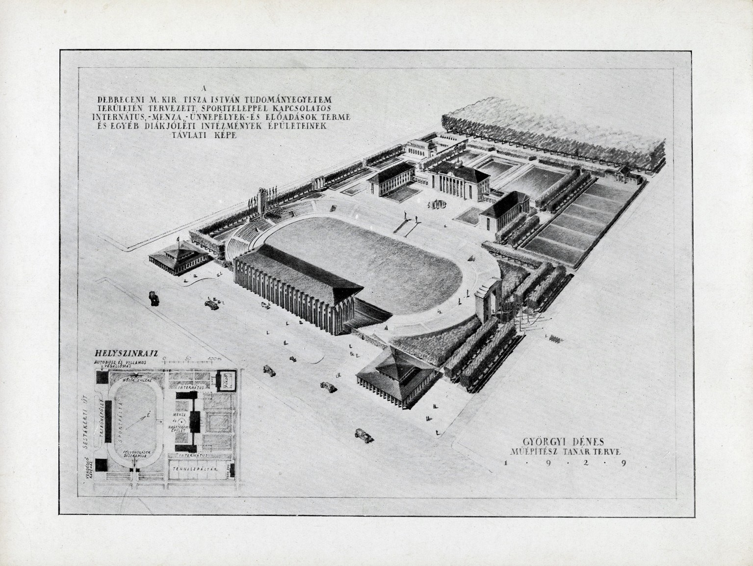 Györgyi Dénes (1886–1961) a két világháború közötti időszak egyik legfoglalkoztatottabb építésze volt. Számos műfajban ért el sikereket, amelyek közül néhány nagy hangsúlyt kapott életművében: ilyen a világkiállítási pavilonok, kiállítóterek és múzeumok, valamint az iskolák tervezése. Az 1920-as években több olyan középület tervezésében vett részt, amelyek szorosan kötődnek Klebelsberg Kuno kultúraépítő tevékenységéhez: nevéhez fűződik a keszthelyi Balatoni Múzeum és Kultúrpalota (1920–1928), a debreceni Déri Múzeum (Münnich Aladárral, 1923–1929) és a barcelonai világkiállítás magyar pavilonja (1929). 1929–1930 között a debreceni Tudományegyetem számára készített terveket diákotthonról, sporttelepről, tanári lakásokról, amelyek közül az utóbbiak épültek fel. Már Klebelsberg iskolaépítési programja alatt, 1926–1928 között készült el Györgyi tervei alapján a Rákospalotai Iskola (ma Károly Róbert Kereskedelmi Szakközépiskola).
