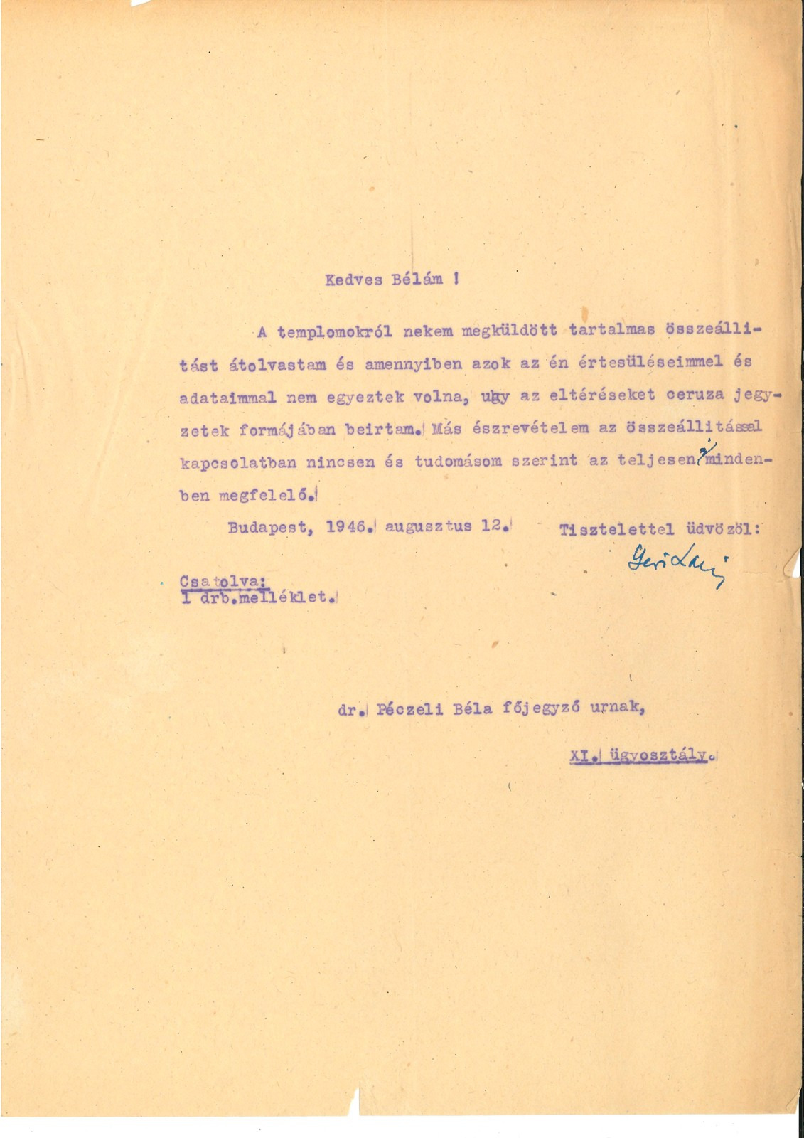Péczely Béla jogi végzettségével a Fővárosnál kezdte pályafutását művészeti ügyek előadójaként az 1920-as évek elején, majd nem sokkal később már a Közművelődési Ügyosztály helyettes vezetője lett, egészen nyugdíjazásáig. Gazdag munkásságából ebben a megemlékezésben csak egy pár eredményt tudunk kiemelni. Fontosnak tartotta a feltárt emlékek megőrzését eredeti helyükön. Két földalatti, római kori múzeum is létrejött az ő támogatásával, lehetővé téve a Flórián téri fürdő romjainak és a Március 15. téri Contra Aquincum erőd bemutatását in situ. Neki köszönhetünk több, a város múltjáról tájékoztató, épületekre elhelyezett kőtáblát. Sokat tett a Halászbástyában kialakított középkori kőtár, a Kiscelli Múzeum és a Károlyi palotában megvalósuló fővárosi múzeumok létrehozásáért. A háború utáni romokban heverő város újjáépítésében is aktív szerepet vállalt. Szakmai munkájának elismerését Gerő László levele bizonyítja.