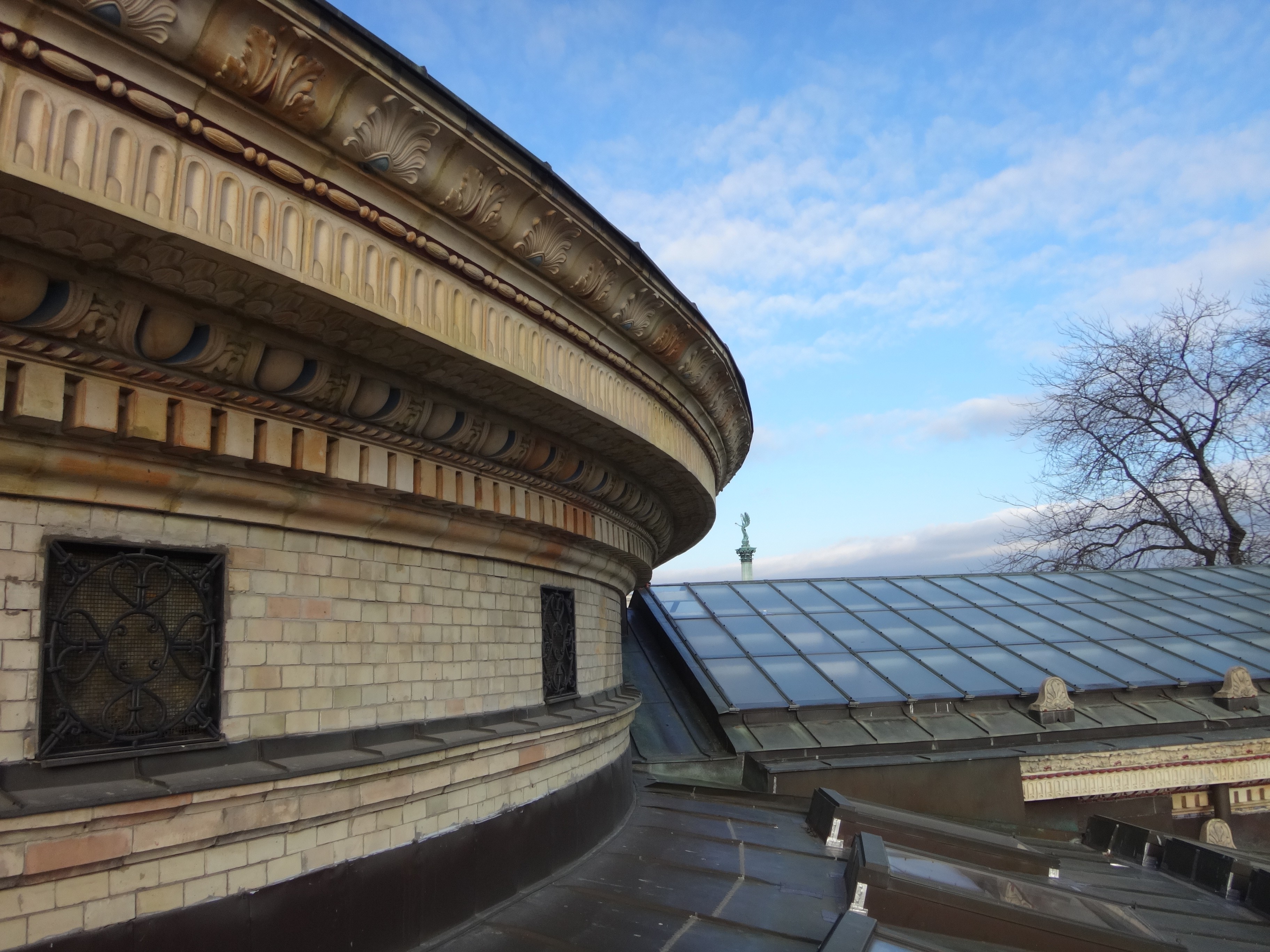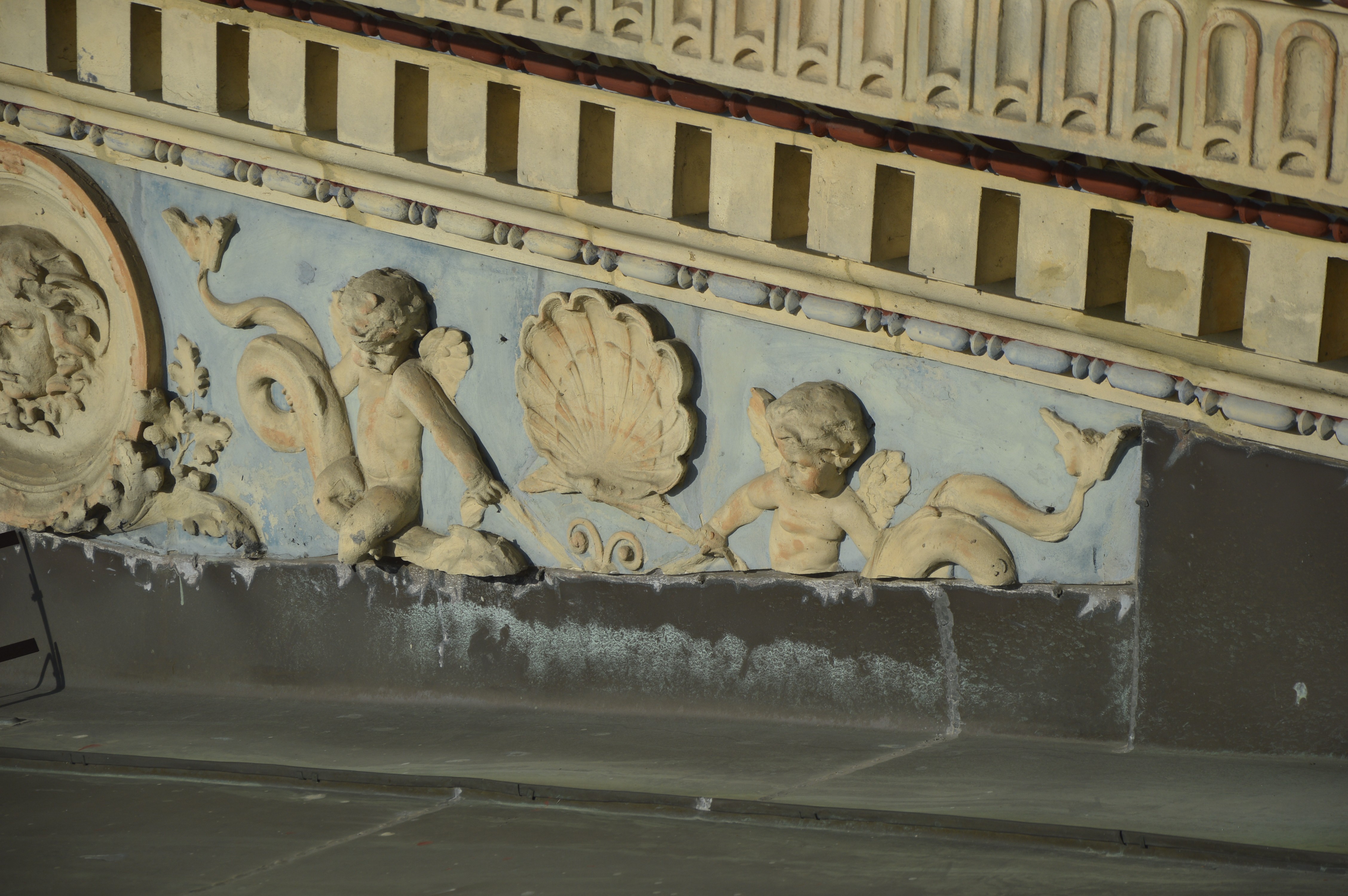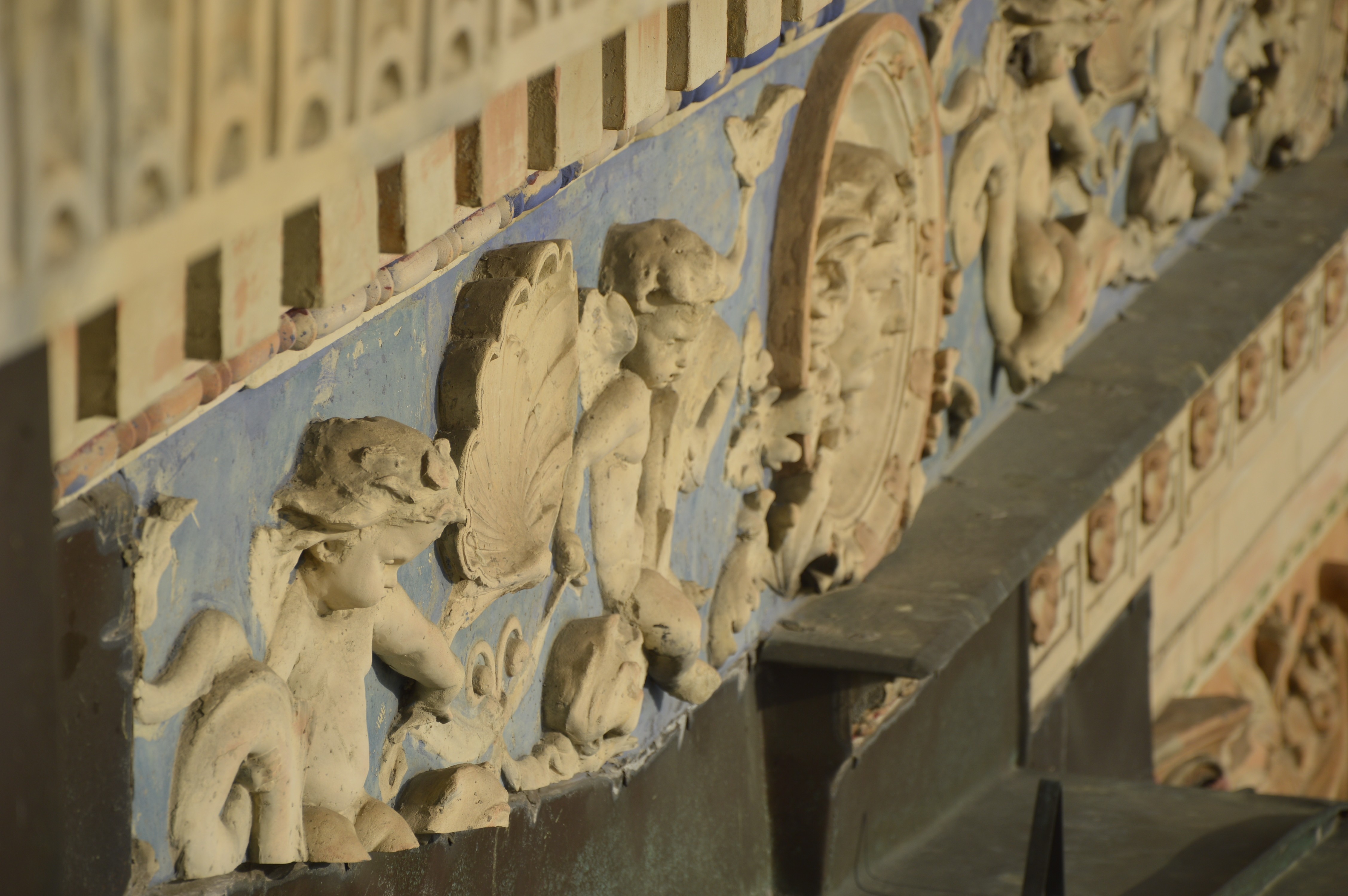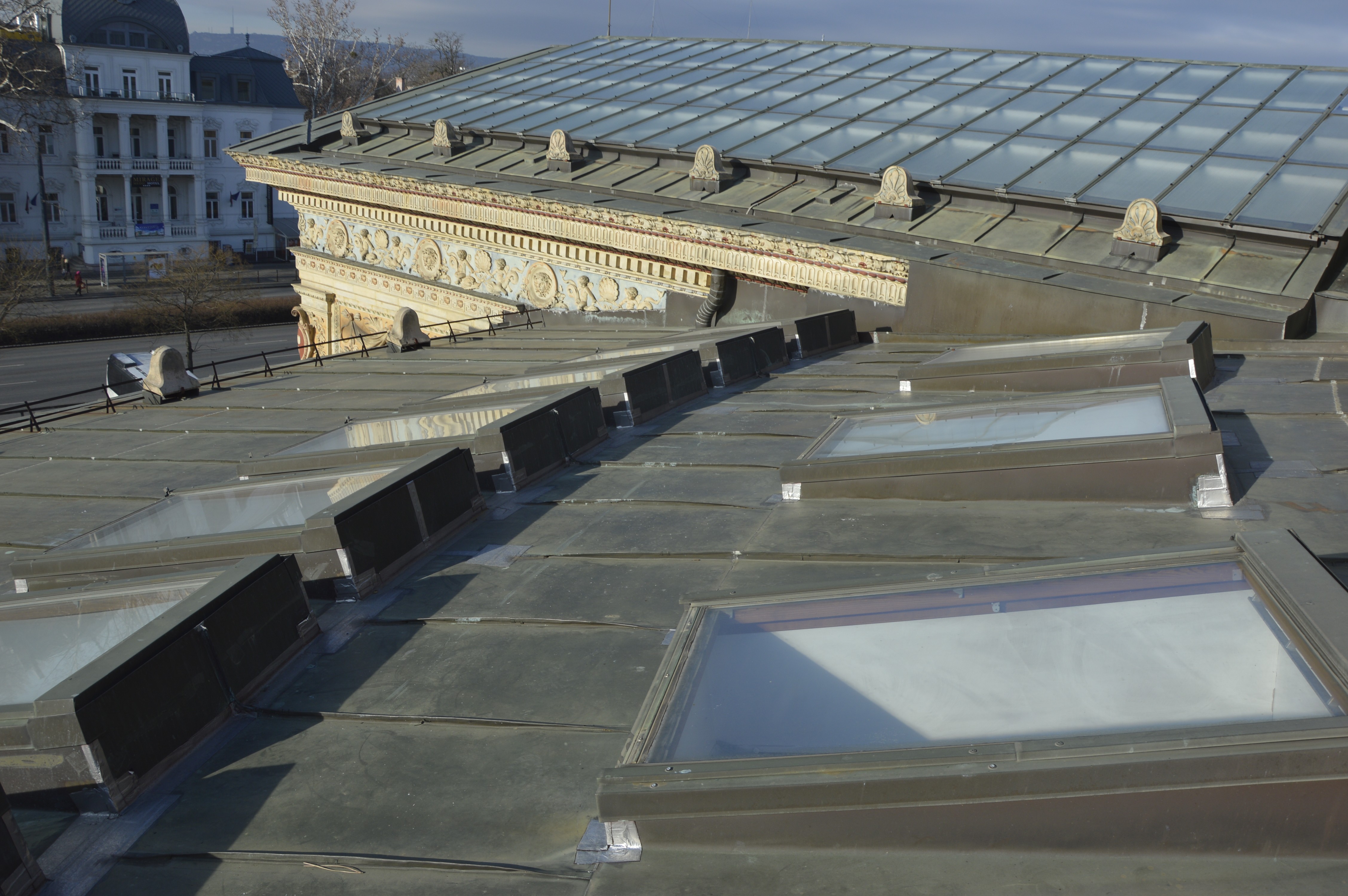 Előbbiek közé tartozik a Műcsarnok épületéről készített építéstörténeti dokumentációnk. A Műcsarnok, a MÉM-MDK-hoz hasonlóan az MMA egyik intézménye, 2018. év elején fordult hozzánk azzal az igénnyel, hogy a régóta esedékes gépészeti felújítás előkészítéseként építéstörténeti dokumentációt készítsünk. Erre azért is szükség volt, mert a nagy múltú kiállítóhely műemléki védettséget élvez, és – a jogszabályi előírásoknak megfelelően – a hatósági engedélyezési eljáráshoz szükségessé vált egy ilyen anyag mellékelése a tervekhez. A dokumentáció összeállításakor a bőség zavarával küszködtünk, hiszen jól ismert, többször publikált épületről van szó, melynek tervanyaga is ismert. Ugyanakkor néhány kérdésben sikerült kiegészíteni, színesíteni a Schikedanz Albert által tervezett épületről kialakult képet. A rendelkezésre álló rövid idő alatt a feladatot három felé osztva oldottuk meg. Az építéstörténetet Fülöp András, a belső terek értékleltárát Jankovics Norbert írta meg. Külön kihívás volt a homlokzatok gazdag ornamentikája, melynek aprólékos, szakszerű leírását Galamb Zsuzsanna készítette. (Az építéstörténeti dokumentáció letölthető az alábbi linken)