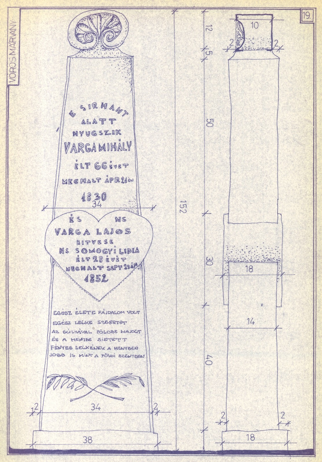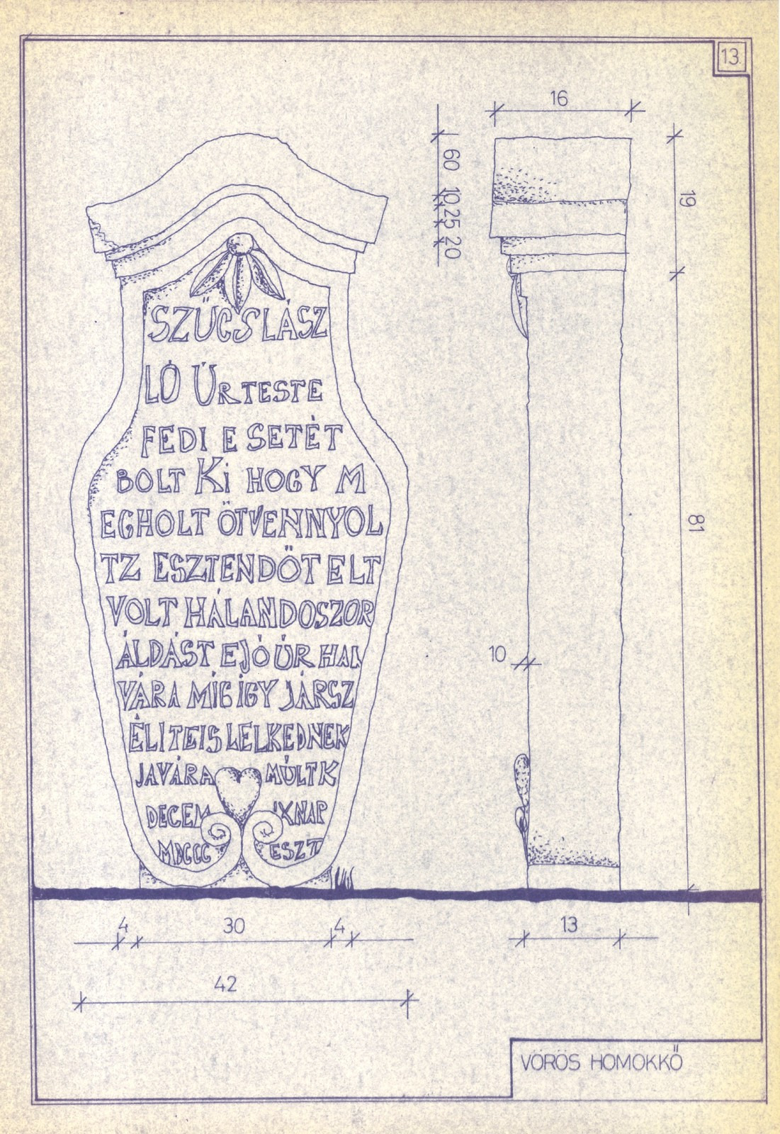 November első fele sokunk számára jelenti az elhunyt szeretteinkről való megemlékezés különböző formáit, különösen is végső nyughelyeik felkeresését, gondozását. Ilyenkor az estéket számos temető fölött vonja fényárba a megannyi mécses külön-külön talán elenyészőnek ható aprócska lángja. A sírok között legtöbbször szürkén, magára maradva lapul egy-egy olyan évszázados emlék is, amelyeket jellemzően már senki sem látogat, és ha legalább ilyen módon, de fennmaradnak, az már szerencsés körülménynek tekinthető. Ugyanis e régi kőemlékek nem csupán a természet károsító hatásai által pusztulhatnak, de a kegyeletsértés és a sírhelyek újraváltásának rendszere sem kedvez nekik. Nem ritka, hogy a díszesen faragott 19. századi, ámde lejárt sírjel kiásott és megfelelő méretűre összetört darabjai az újonnan készülő jellegtelen műkő öntvény alapozásában, vagy pedig temetői utak gödreinek kiegyengetésében nyernek új funkciót. Napjaink sírkertjeit sok esetben a változatosságot és igényességet már alig mutató műkő vagy színes gránit nyughelyek sorai uralják. Nemcsak e látkép kedvezőbbé tétele, hanem mindenekelőtt múltunk sírjel örökségének megőrzése és megbecsülése okán lenne fontos nagyobb figyelmet fordítani temetőink állapotának méltóbb rendezésére.