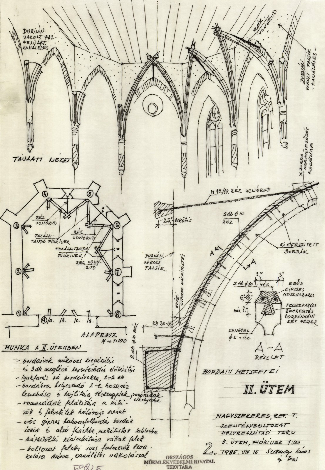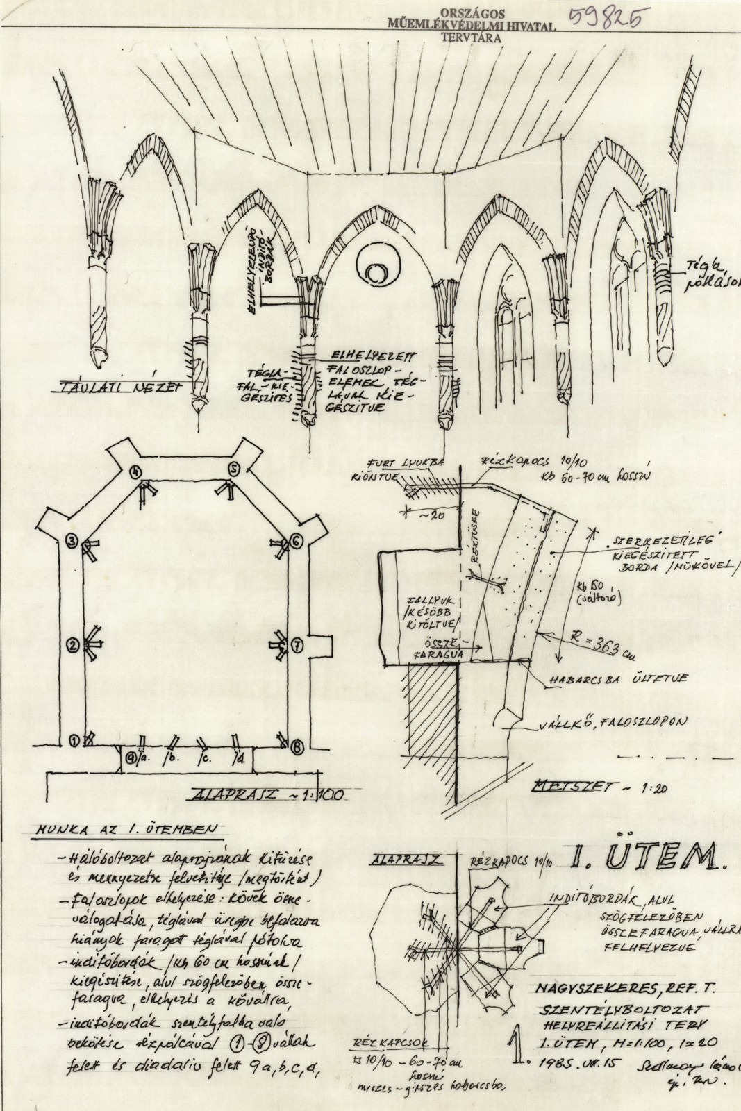A boltozatok jelzésszerű rekonstrukcióinak különböző módozatait az Országos Műemléki Felügyelőség (OMF) időszakában virágzó, nagyon korszerűnek számító műemlékvédelem hozta létre. Elsősorban gótikus boltozatok pótlására több változat is megépült Magyarországon, amelyek alapvetően három csoportba oszthatók: vagy bordaívek segítségével, vagy boltmezők segítségével, vagy egyéb, illúziókeltő módszerrel történt a bemutatás. Az első módra jellegzetes példa Nagyszekeres, a másodikra a soproni Ó-zsinagóga vagy a budai domonkos kolostor kerengője, míg a harmadikra a Salamon-torony legfelső szintjén lévő, a boltmezőket érzékeltető, lógatott vasháló említhető (mindegyik példa tervezője Sedlmayr János). Az OMF másik speciális helyreállítási módszerének, a különféle építési periódusok, rétegek egymás mellettiségének, egyidejű bemutatásának is különleges példája a nagyszekeresi templom szentélye.