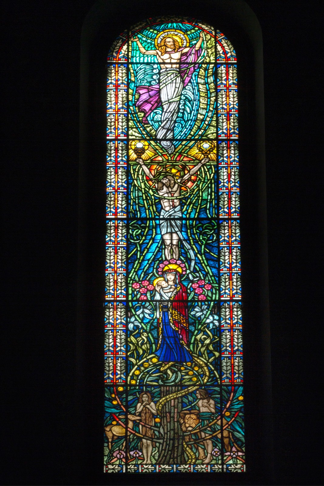 Every year since 2013, World Art Nouveau Day has been celebrated on a Hungarian initiative. This year we join the celebration with focusing on Miksa Róth’s glass art, which suits well to the topic of this year’s festival: the Art Nouveau stained-glass. In December 2015, on the occasion of the International Year of Light, the exhibition entitled ’Clear colouring in simple lines’ was presented by the Hungarian Museum of Architecture on Miksa Róth’s glass art. One of the most prominent artworks of the exhibition held in De la Motte-Beer-Palace was the stained-glass sample-piece from Miksa Róth’s workshop depicting a detail from the Chapel of the Mental Hospital in Lipótmező, Budapest.