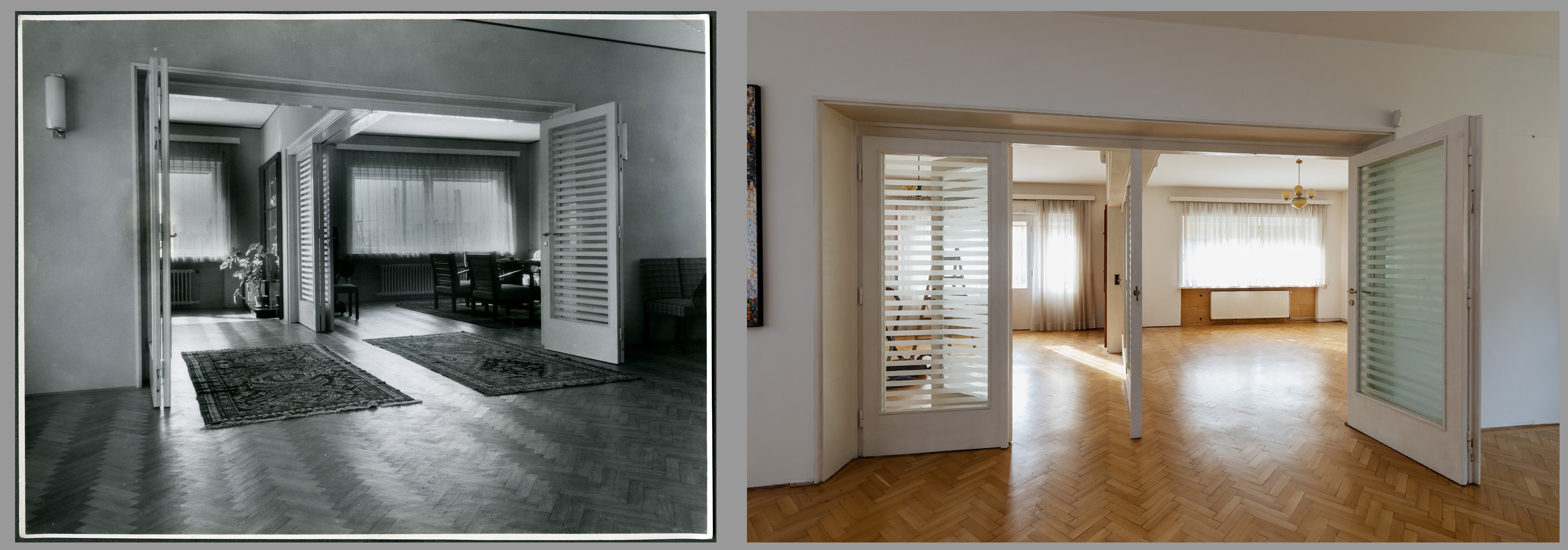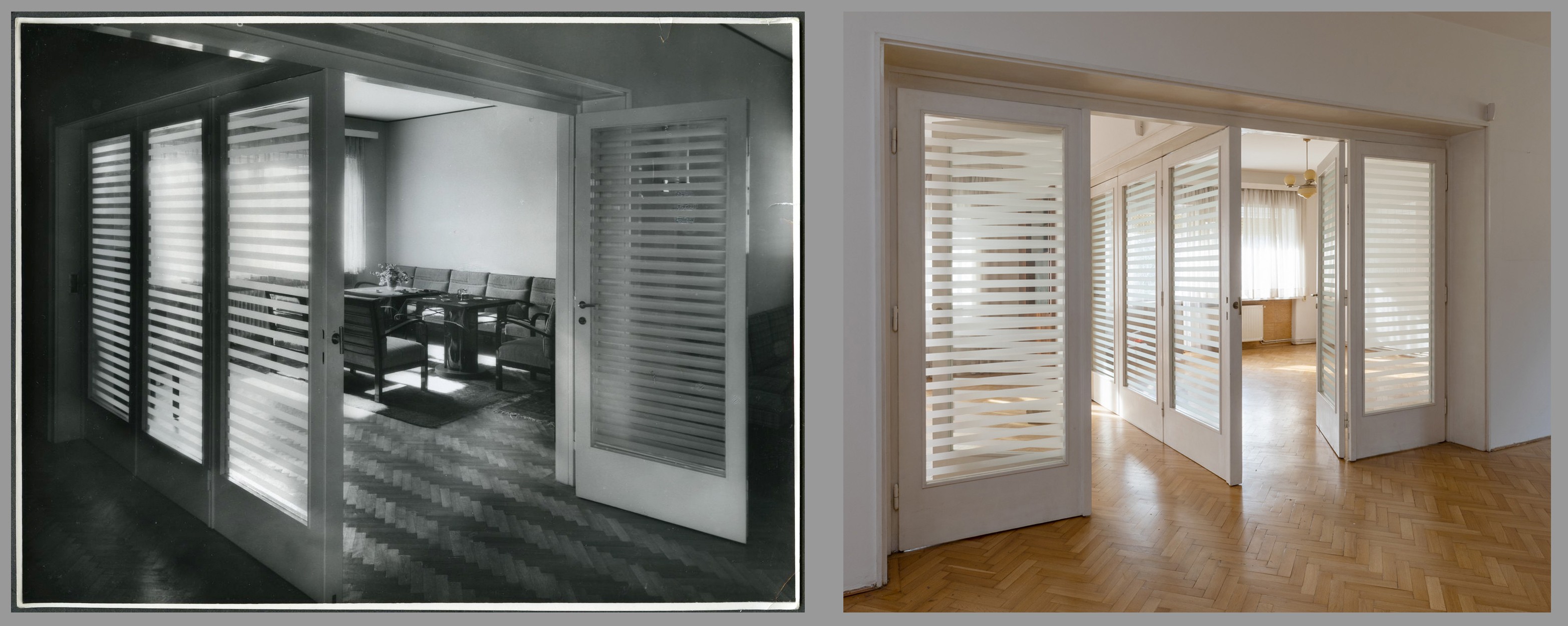 A Magyar Építészeti Múzeumban őrzött archív fotóanyag már több alkalommal is szolgált épületfelújítások és rekonstrukciók alapjául. Az épület- és lakásbelsők különösen mulandók, hiszen új élethelyzeteknek és új generációk igényeinek megfelelően folyamatosan alakulnak. Az archív fényképek azonban megőrzik az enteriőrök egy adott időpillanatban létező állapotát, és így olyan elfeledett kincseket fedhetnek fel, mint amilyen például egy repülőt ábrázoló modern üvegablak.