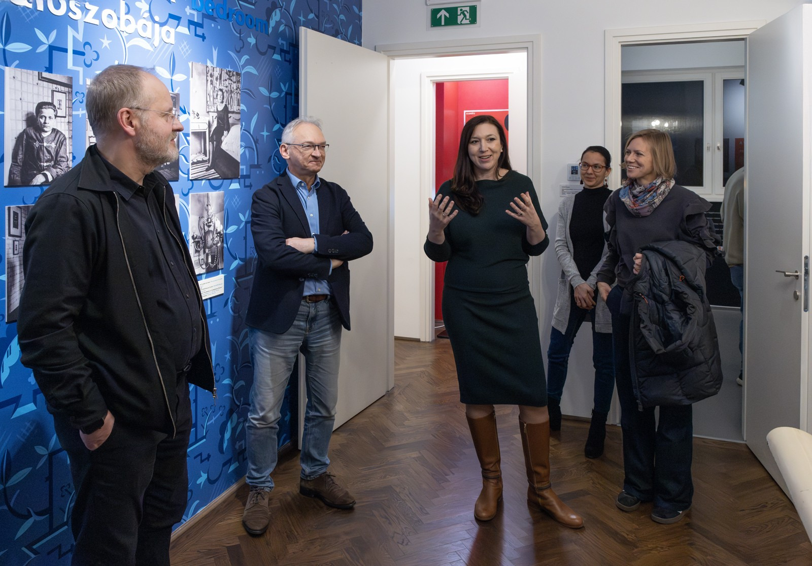Samuli Miettinen finn építész, a JKMM Architects egyik alapítója a FinnAgora meghívására érkezett Budapestre, ahol előadást tartott a Moholy-Nagy Művészeti Egyetemen és az Arkki Hungary iskolájában. Ezt követően Mikó Zsuzsanna Eszter, az Arkki Hungary egyik alapítója társaságában felkereste első kiállítóhelyünket, a Walter Rózsi-villát, ahol dr. Almássy Kornél igazgató, Dr. Bódiné Kersner Katalin igazgatóhelyettes, Korda Júlia, a Walter Rózsi-villa vezetője és Ritoók Pál, a Múzeumi Osztály vezetője látta vendégül.
