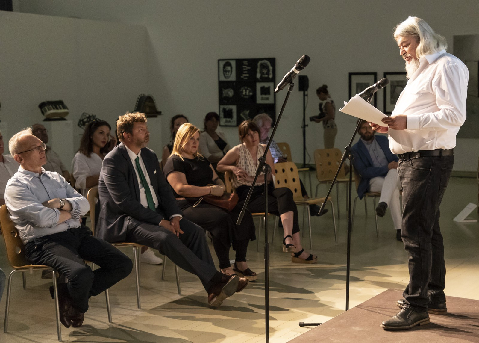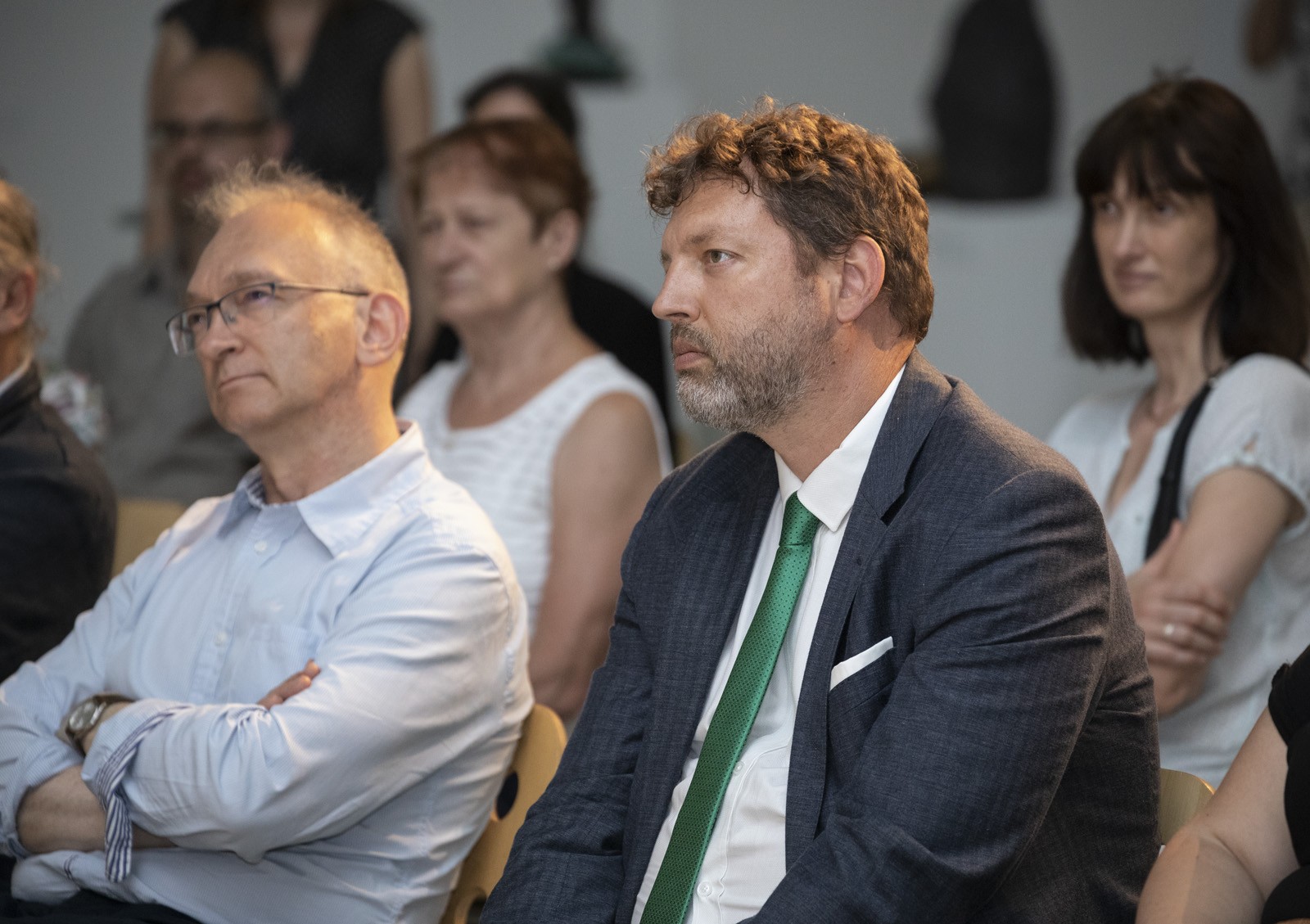 Július 28-án, délután 17.00 órakor nyílt meg Sándy-Konok Metszéspontok címmel a művészcsalád tagjainak művészetét bemutató kiállítás a Műcsarnokban. A Magyar Építészeti Múzeum és Műemlékvédelmi Dokumentációs Központ Sándy Gyula-hagyatékának műtárgyain és dokumentumain, valamint a Bélavári Krisztina által készített épületfotókon kívül az idén 90. születésnapját ünneplő Konok Tamás Kossuth-díjas festőművész műalkotásai is láthatók, id. Sándy Gyula festményeivel és id. Konok Tamás fotóival és személyes tárgyaival együtt. A művész maga is mondott néhány köszöntő mondatot, ezután Szegő György, a Műcsarnok igazgatója, valamint Dr. Almássy Kornél, intézményünk igazgatója üdvözölte a jelenlévőket és a tárlat megszületését. A kiállítást Hadik András művészettörténész és Antalffy Péter történész nyitotta meg.