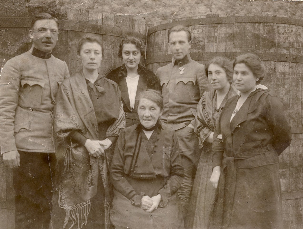 A Diamant család 1917 körül. Középen ülve Diamant Rozália. Hátul balról Salzer Dávid és Diamant Teréz, Eichner Ilona és Diamant Miksa, Diamant Elza és Vajda Anikó. Fotó: Diamant-archívum, Janice Guy jóvoltából
