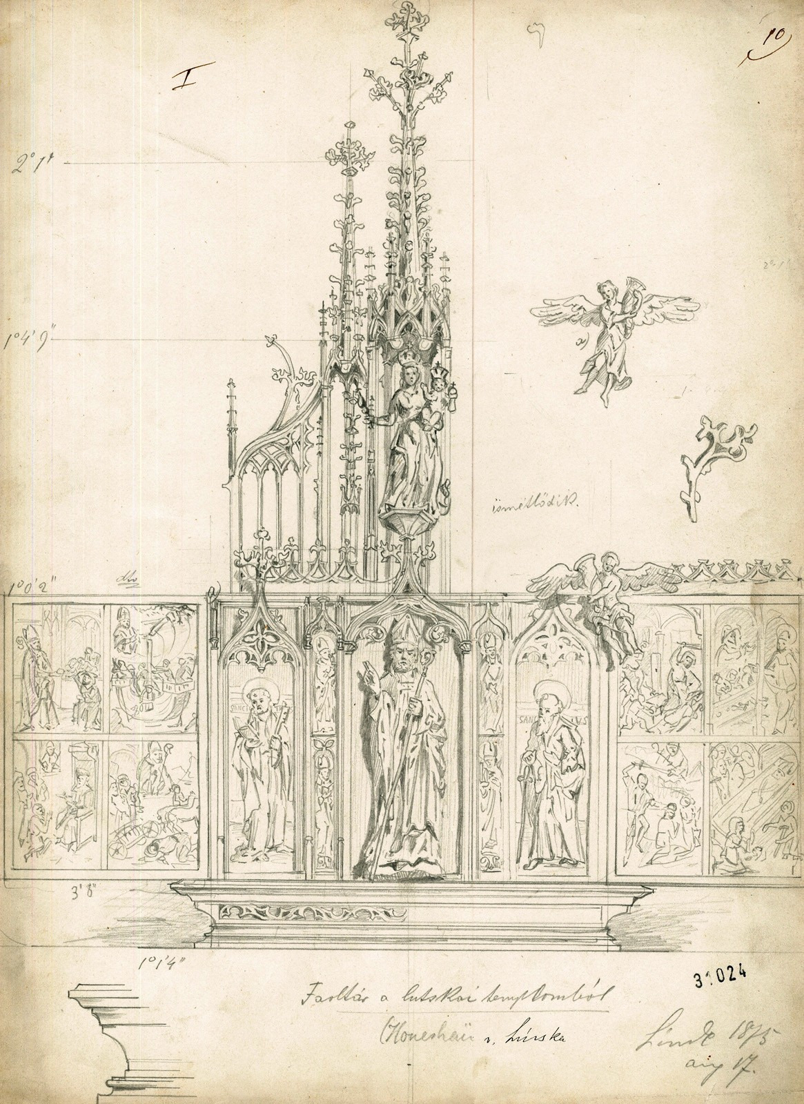 A kisszebeni oltárok kissé idealizált felmérési rajzait Myskovszky Viktor, kassai rajztanár készítette, aki a reneszánsz emlékek iránt is élénk érdeklődést tanúsított. A kései reneszánsz stílus nem pusztán a protestáns és Habsburg-ellenes Erdélyben maradt fenn a barokk magyarországi megjelenésével párhuzamosan, hanem például a Sáros vármegyei Zborón is. A plébániatemplom főoltára (1646) oszlopos-architrávos, fülkés struktúrájáról Myskovszky szemléletes felvételt készített, ugyanakkor a későbbi korok, így a barokk és a klasszicizmus szisztematikus dokumentálására – a gründerzeit uralkodó szemléletének megfelelően – nemigen terjedhetett ki a műemlékvédelem figyelme. Nem így a historizmusra. A máriafalvi zarándoktemplomról annak restaurálását megelőzően Steindl Imre által készített felmérési tervek mellett az 1884-ben emelt neogótikus oltár terveit is a tervtár őrzi.