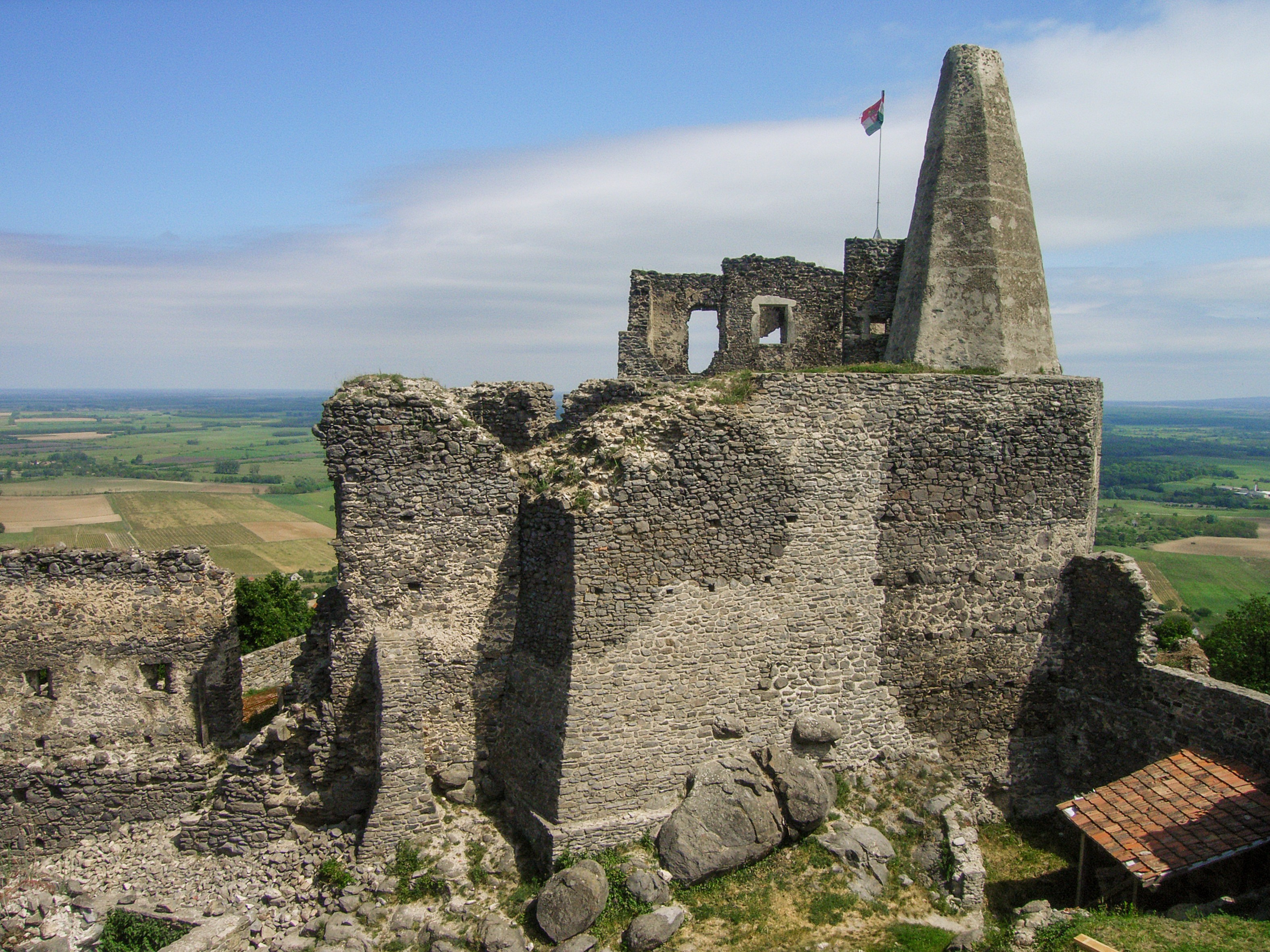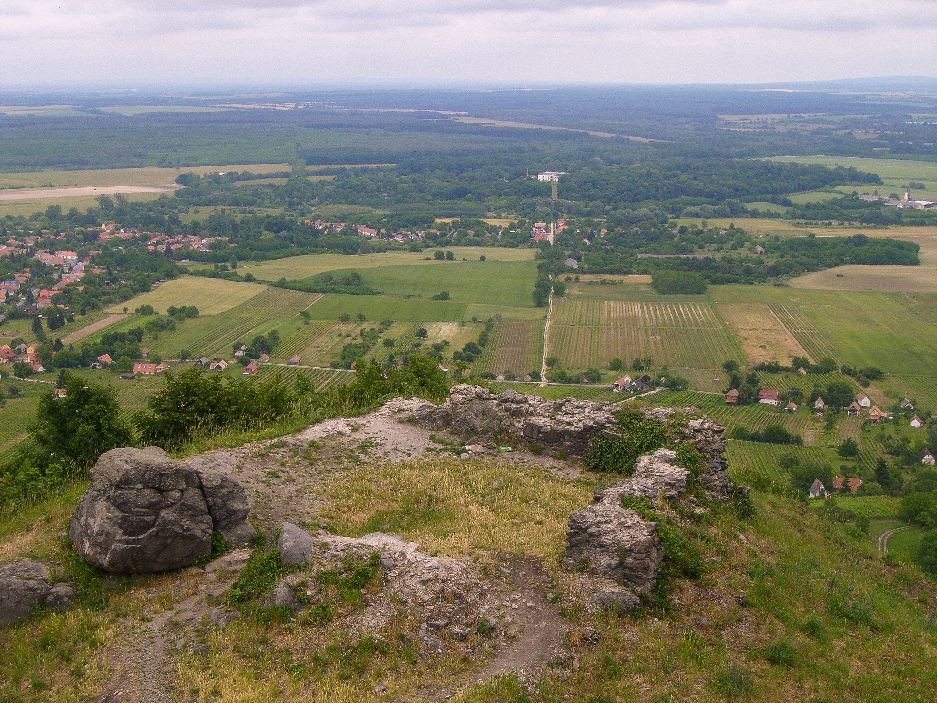 A várat a 14. század második negyedében a Ugodi Csenik mester, veszprémi ispán emelhette királyi támogatással, mégpedig a hegy egyik alacsonyabb ormán. Az épületből már csak néhány falrészlet maradt meg, a mai felsővár területén. 1389-től ugyanis Garai Miklós nádoré lett a vár, és ekkortól kezdve többször is átépítésre került. A magasabb sziklaplatón kialakult a felsővár, ahová egy kapuépítménnyel megszakított, többszörös hídszerkezet vezetett fel. Az alsóvár területén ekkor egy-két épület is állhatott, melyeket később visszabontottak, illetve feltöltöttek.