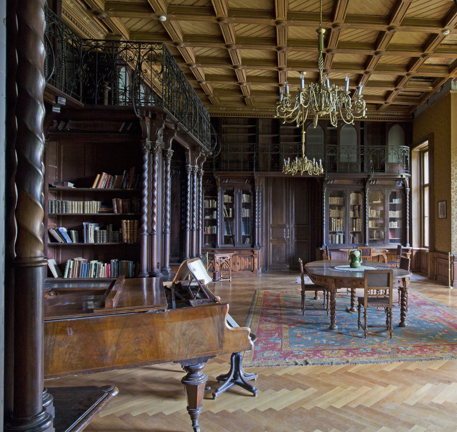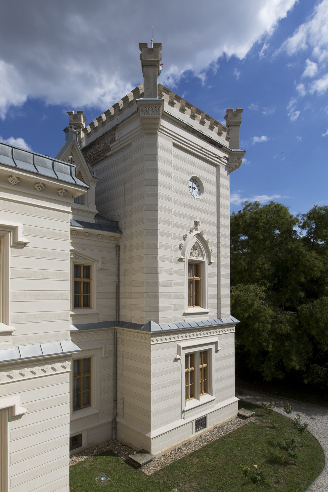 A kastély új főépületét gróf Nádasdy Ferenc építtette fel 1873-76 között, Linzbauer István tervei alapján. Mintául olyan, a könyvtárában is igazolhatóan megtalálható építészeti szakkönyvet tett az építész elé, amelyek az angliai „Tudor-gótika” stílusában épült házak rajzait tartalmazta. Linzbauer korai halálát követően Hauszmann Alajos fejezte be a kastély belsőépítészeti munkálatait, mely elsősorban az Ősök csarnokára és a könyvtárteremre terjedt ki. Ezek pompás fafaragással díszített berendezését a mai kor embere is csak megilletődéssel tudja szemlélni.
