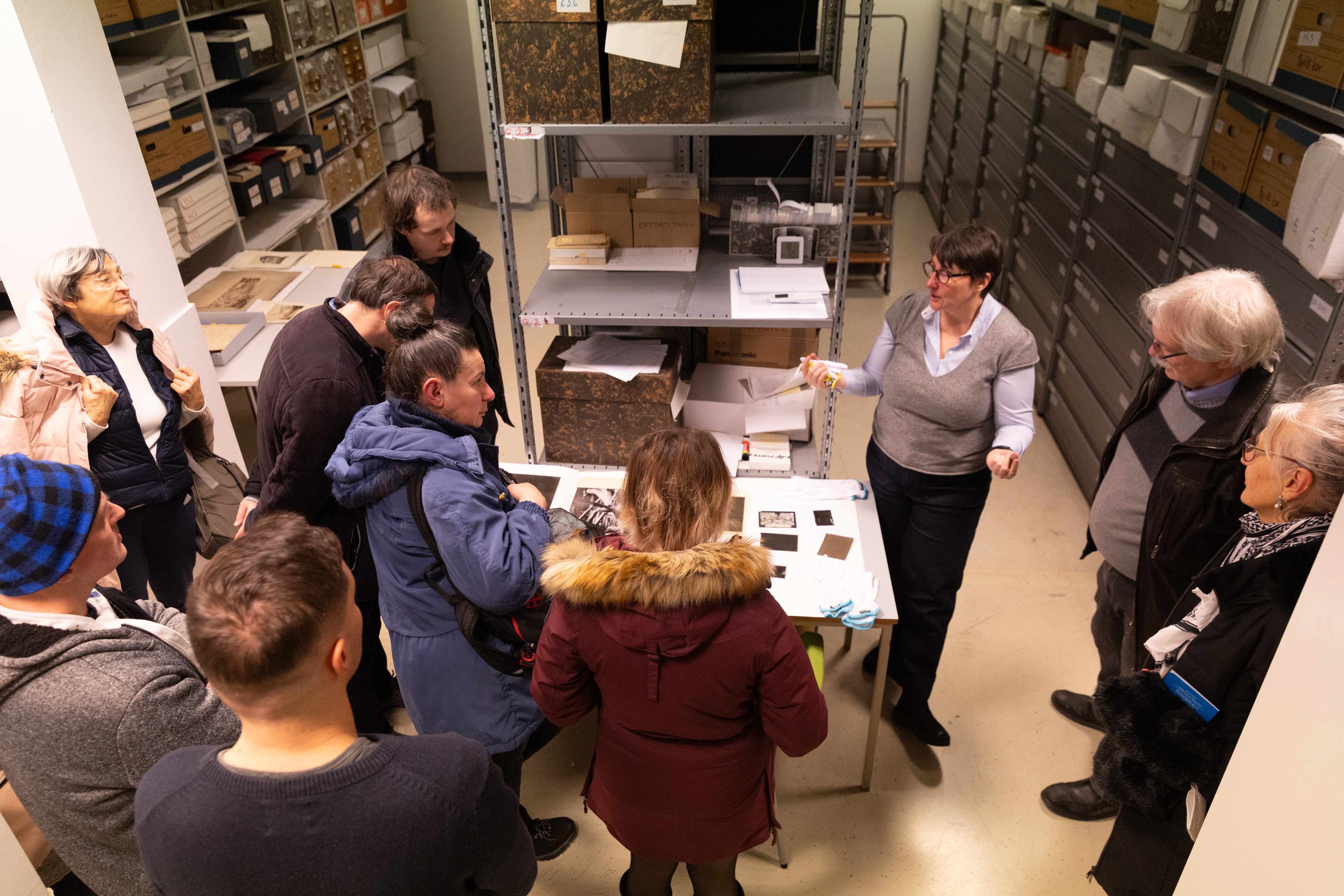 A Fotótárban szó esett a műemlékvédelem korai időszakának legfontosabb fotósairól, illetve a fotódokumentációk fontosságáról, de Divald Kornél, Árkay Bertalan és Seidner Zoltán által készített pozitív fotók is bemutatásra kerültek. A fotótári raktárban a gyűjtemény legrégebbi fotóit is megtekinthette a csoport, mint technikatörténeti érdekességet.
