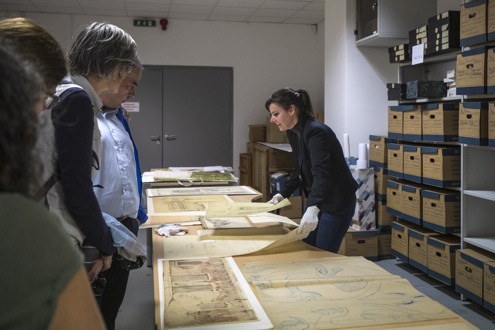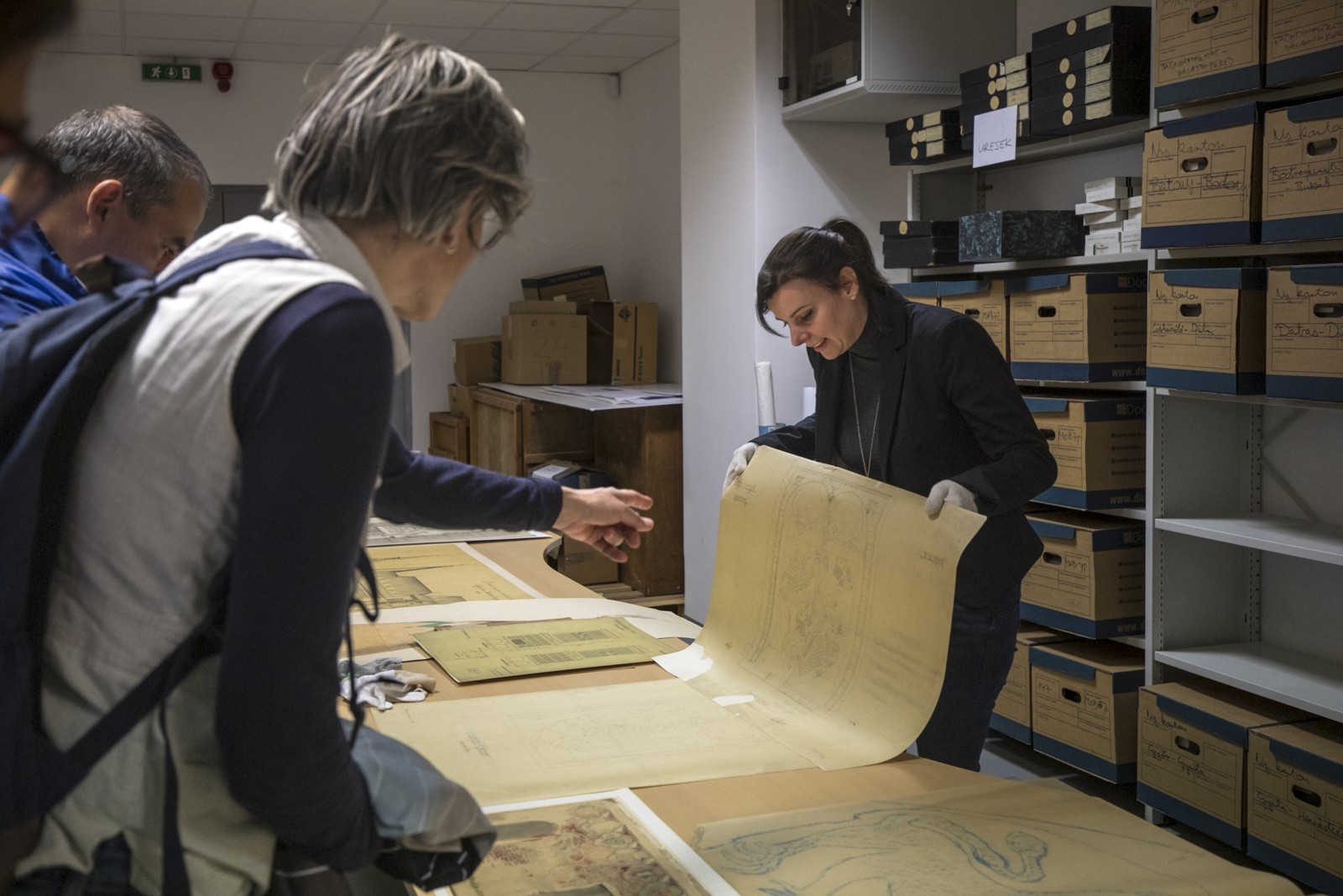 Ezt követően a közel 500.000 darab dokumentumot számláló Tervtárat mutattuk be a 19. század közepétől kezdődő vajdahunyadi helyreállítások tervanyagán, illetve Stippek József építésznek a magyarsarlósi római katolikus templomról készített részletgazdag ceruzarajzain keresztül.